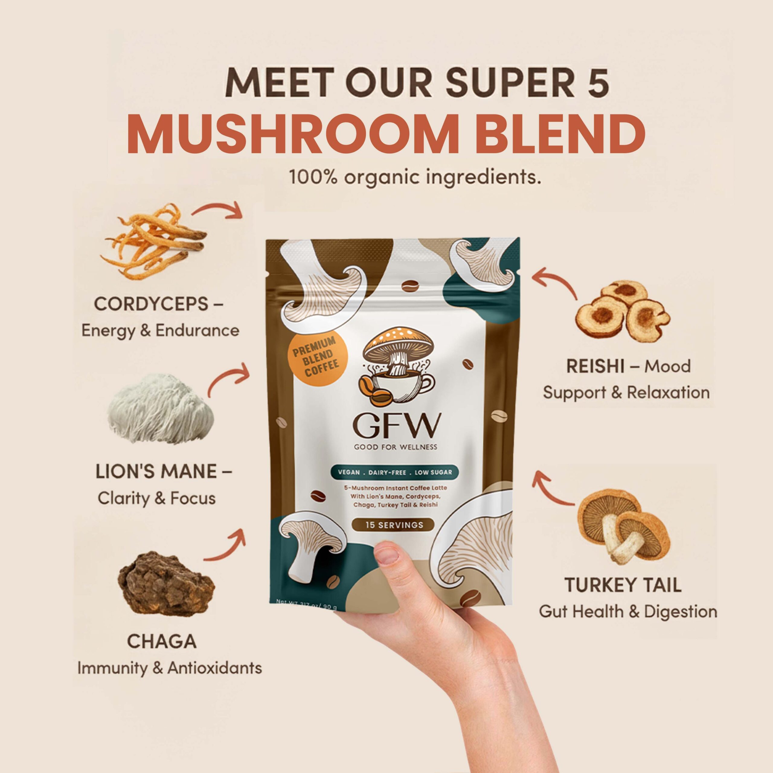 With Lion’s Mane, Chaga, Cordyceps, Turkey Tail & Reishi